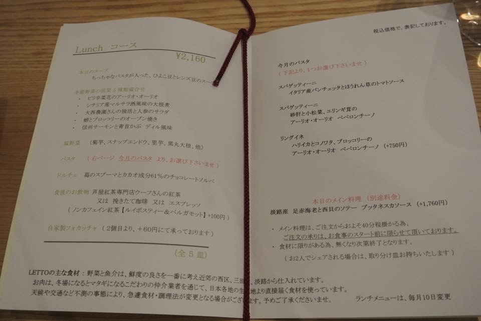 この日のメニューです。※多少変わっています。