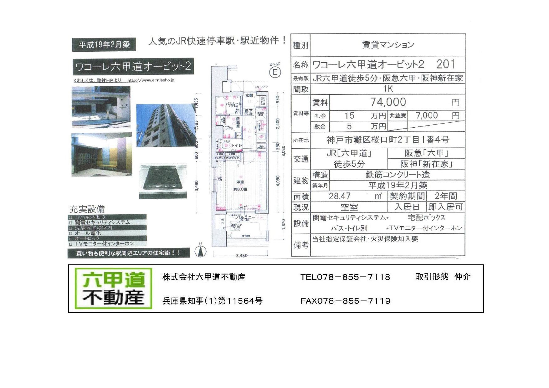 桜口2丁目のワコーレ六甲道オービット2です。201号室です。