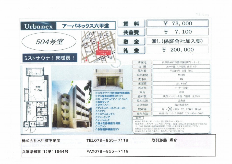 六甲道近辺の賃貸マンション(ワンルーム・単身)の紹介です。