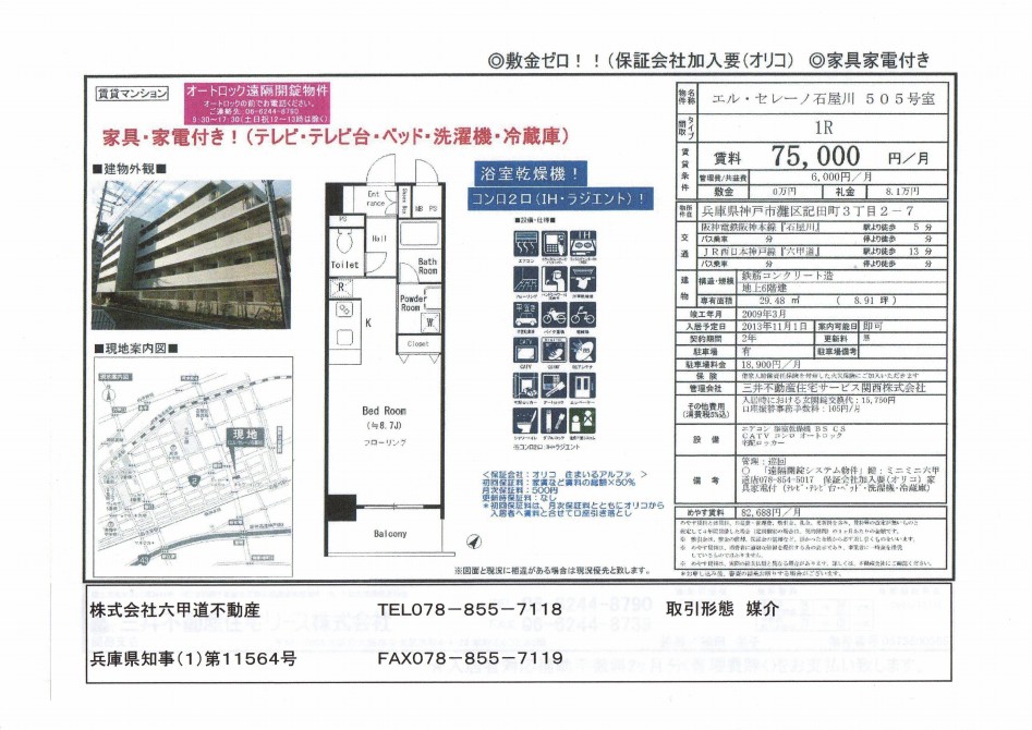 阪神石屋川から5分、JR六甲道から徒歩13分。