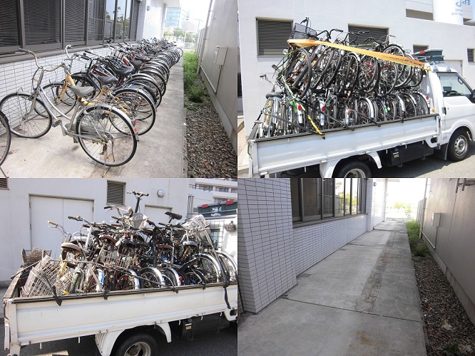 汗だくになりながらトラック満載の自転車を回収いたしました